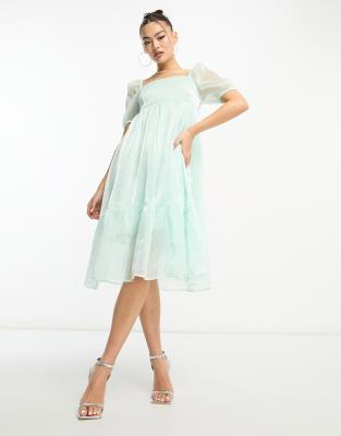 Collective the Label Petite puff sleeve midi dress in sage organza-Green