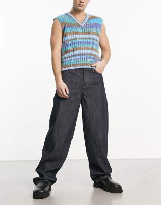 COLLUSION x014 90s baggy slub jeans in indigo-Blue
