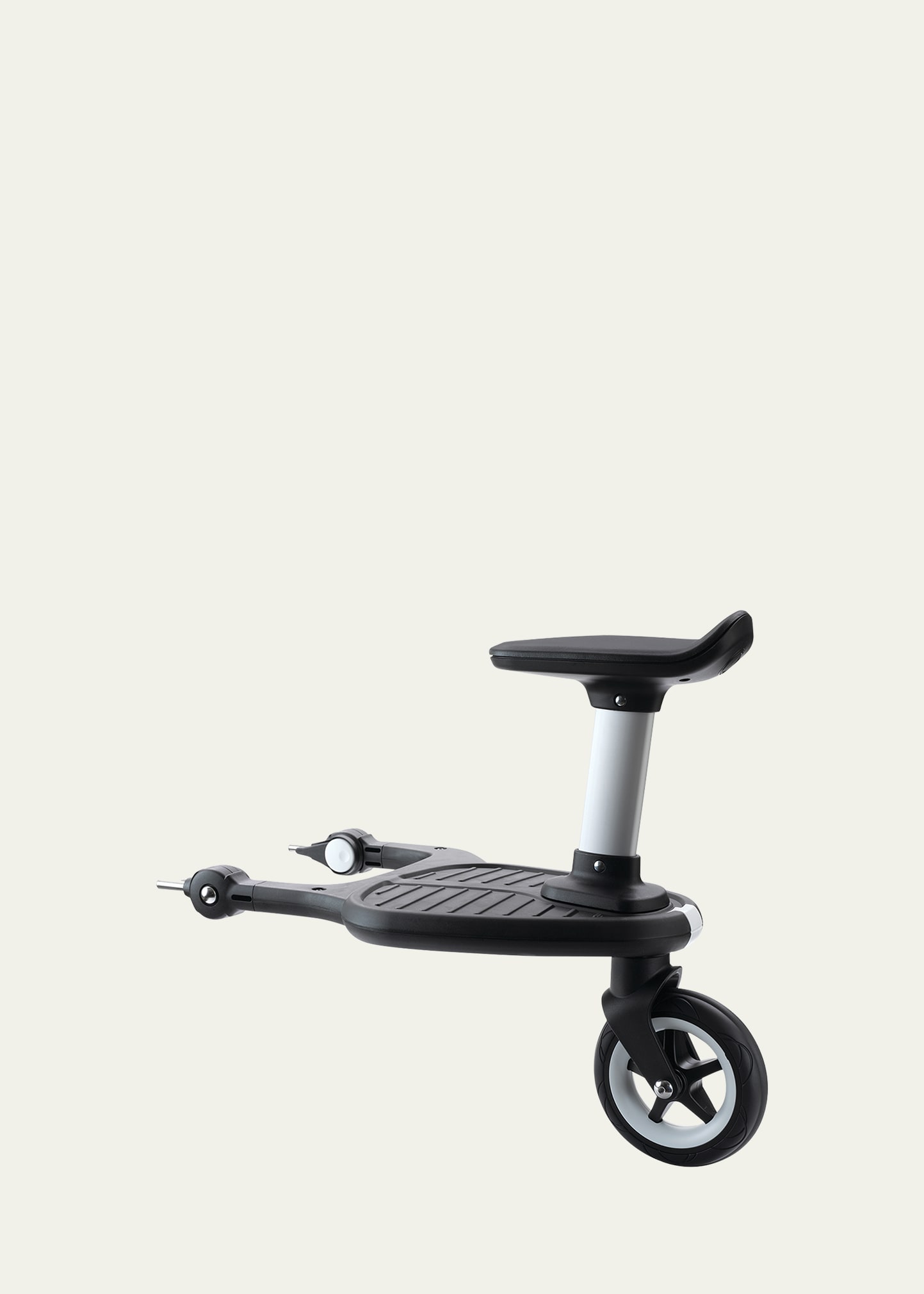 Bugaboo comfort wheeled board for toddlers. Left or right board positioning, based on preference. Self-supporting click system in 3 positions. New design creates 8 inches worth of more walking space. Detachable seat allows a standing or seated ride. Engineered to be robust-up to a load of 20 kg/44 lbs. Seat can be stored in under-seat basket when not in use. Seat to be removed before folding up. Directly compatible with the Bee stroller. Exclusively compatible with the 2017 Bugaboo Comf...