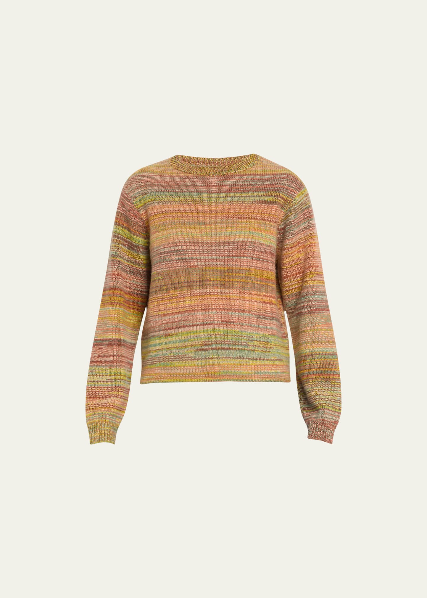 The Elder Statesman "Cosmic" knit sweater with stripe motif Crew neckline Long sleeves Relaxed fit Pullover style Cashmere Dry clean Made in USA from imported materials