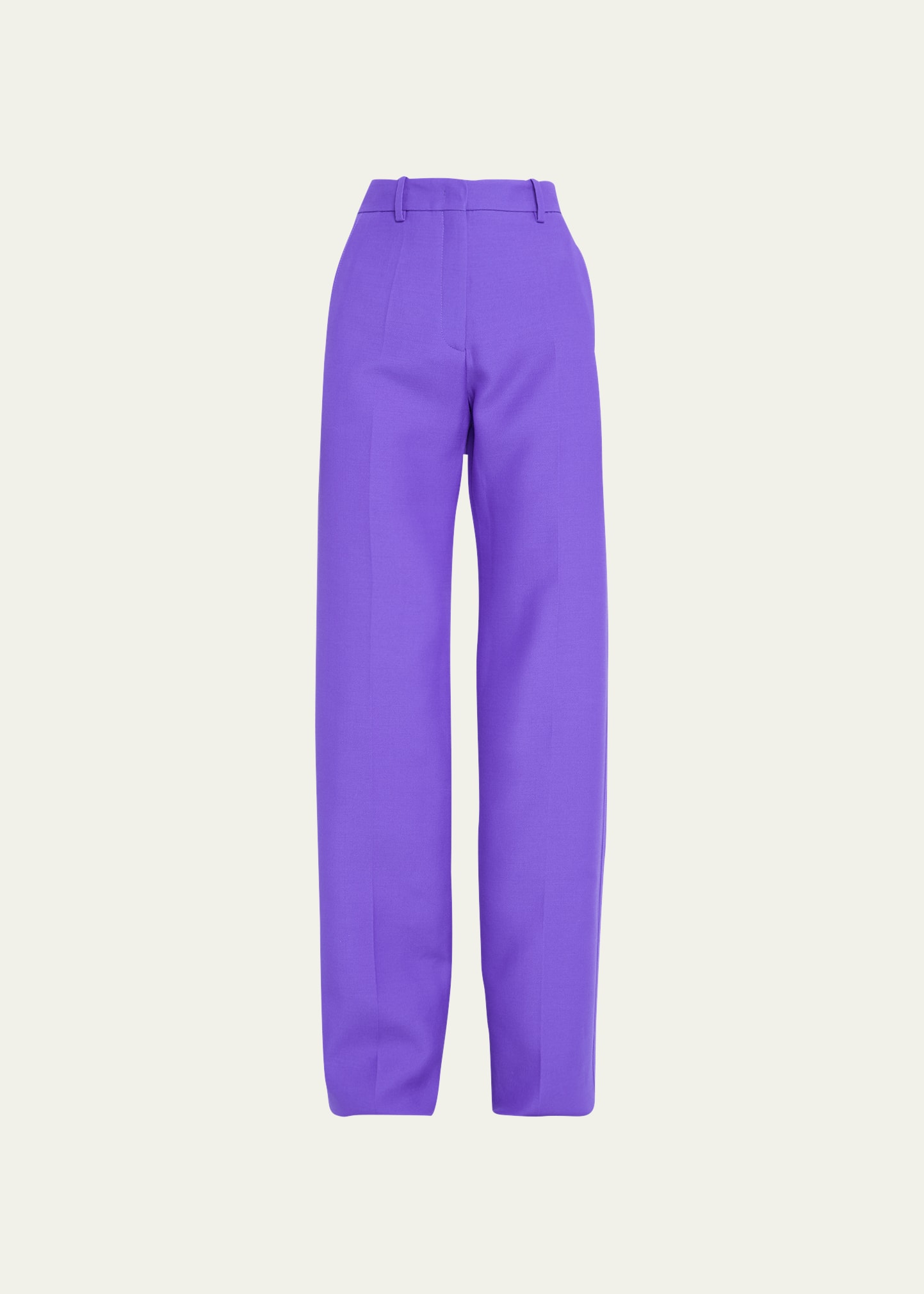 Valentino crepe pants High rise Side slip pockets; back welt pockets Straight legs Full length Tab/zip fly; belt loops Wool/silk Silk lining Made in Italy
