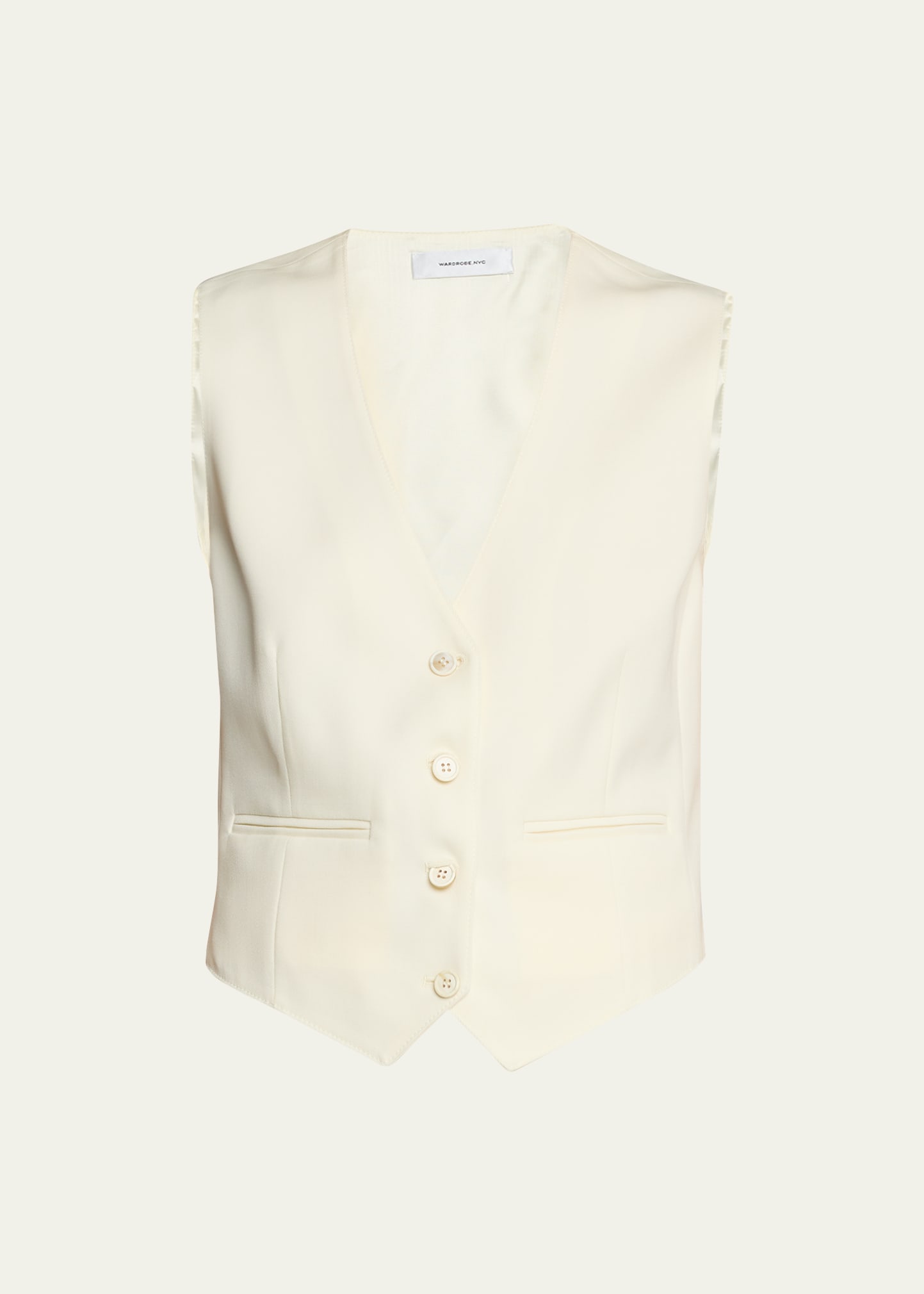 WARDROBE.NYC vest with adjustable back waist V neckline Sleeveless Hip welt pockets Relaxed silhouette Cutaway hem Button-front closure Wool Imported