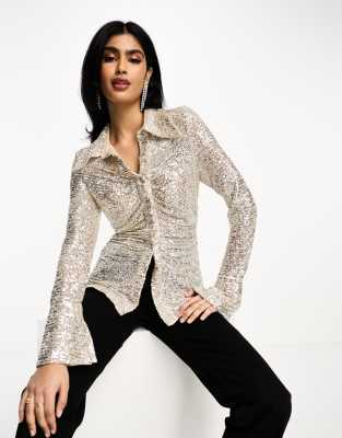 Tops by Daska Love at first scroll Point collar Ruched front Flared sleeves Regular fit