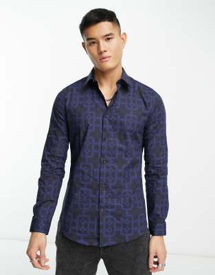 Shirts by Devil's Advocate *Swipes right* All-over print Spread collar Button placket Slim fit