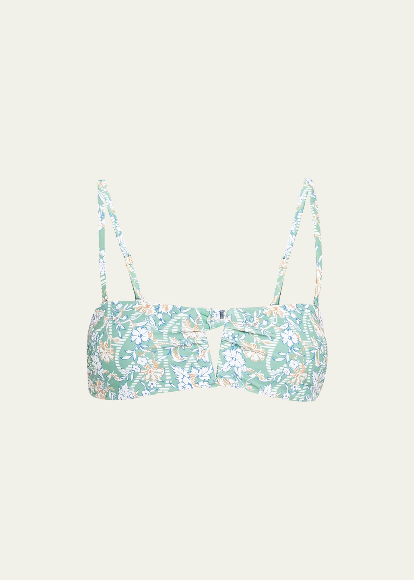 Veronica Beard "Doyle" floral-print bandeau bikini top adorned with a V front accent Strapless neckline Mid-back clasps Polyester/spandex Imported Bottoms sold separately