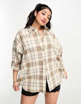 Tops by Dr Denim Plus Love at first scroll Check design Spread collar Button placket Buttoned cuffs Relaxed fit