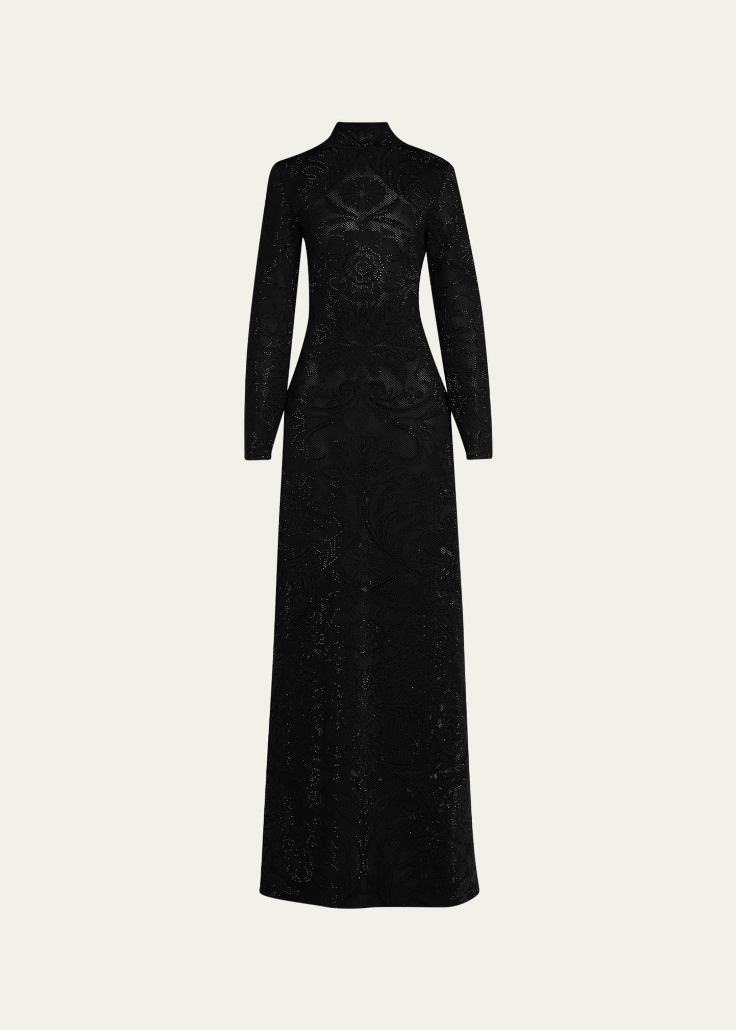 Carolina Herrera lace knit gown features embellished crystal details allover Turtleneck Long sleeves Concealed back zip Full length Trumpet silhouette Viscose/nylon/polyamide/polyurethane Lining: Polyurethane Dry clean Made in Italy