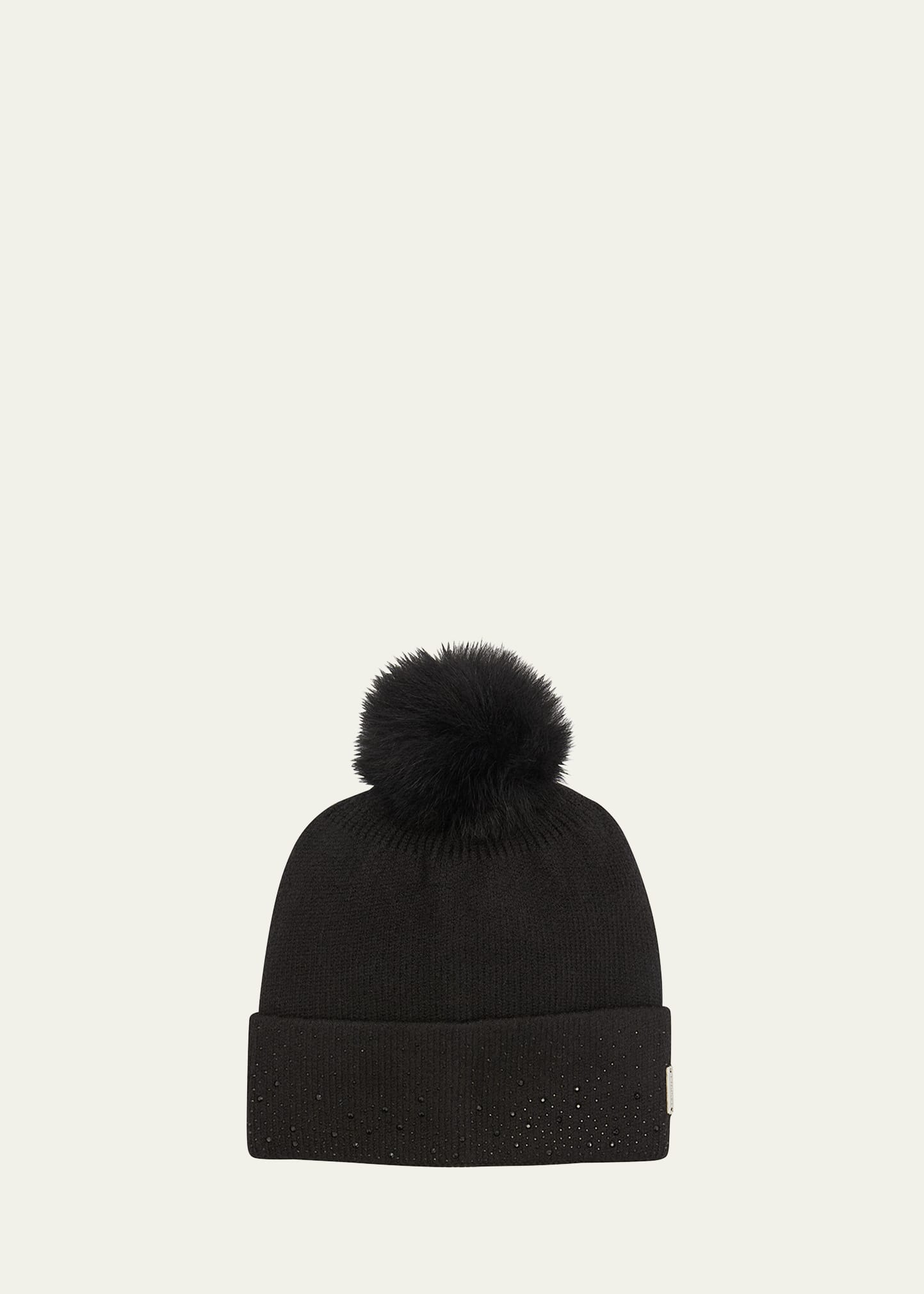 Gorski knit beanie in cashmere with a dyed Toscana lamb (Spain) pom and rhinestone embellishments Metal logo tag accent Folded hem Imported