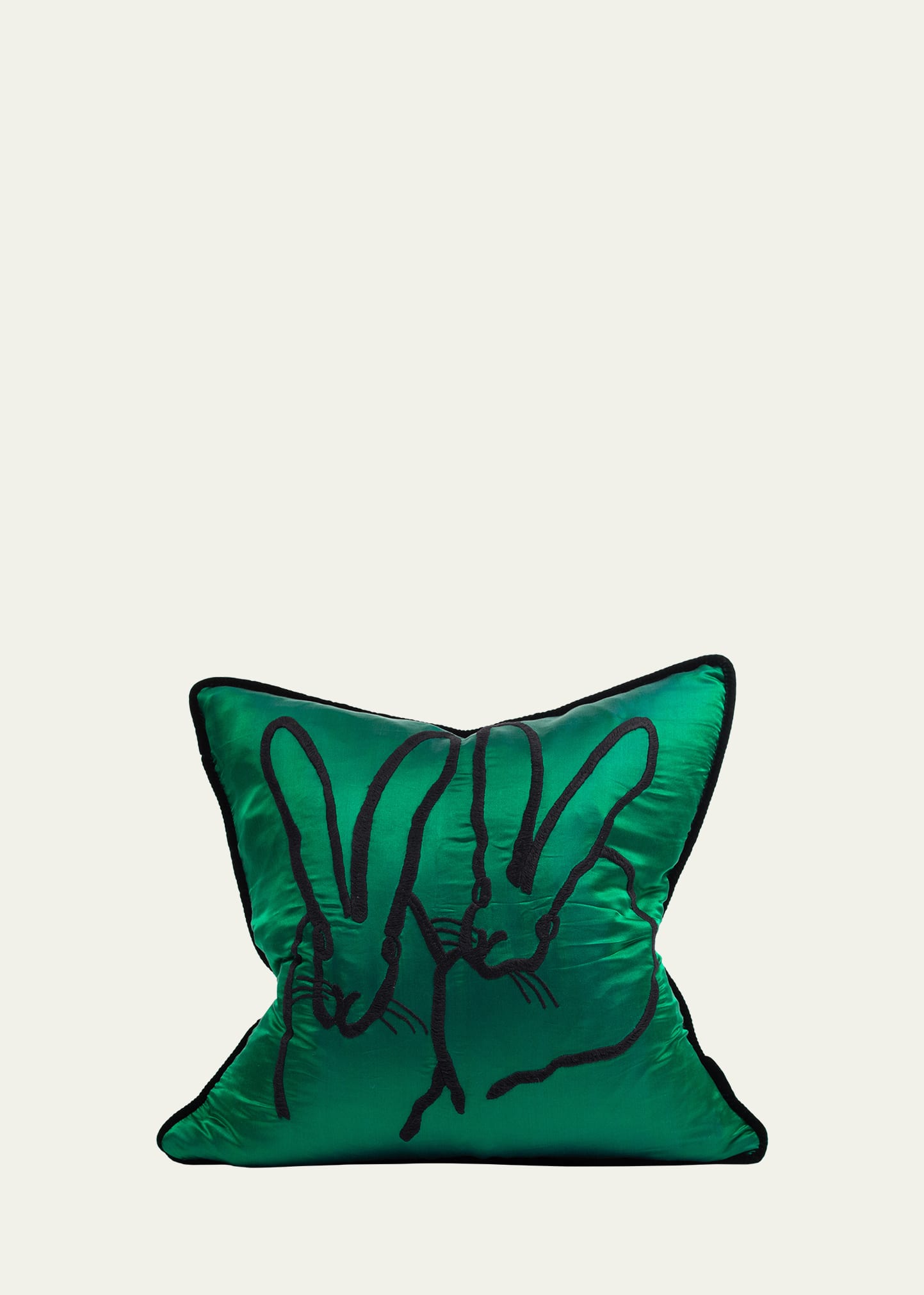 Hand-embroidered pillow featuring Hunt Slonem's signature bunnies on silk front Velvet back Hidden zip closure Removable feather/down insert Approx. 20"Sq Item Weight (Lbs.): 1.0 Cover, dry clean Insert, spot clean Imported