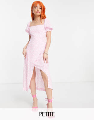 Ever New Petite 90s square neck midi dress in ditsy floral-Pink