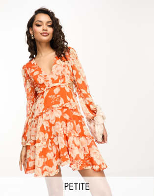 Petite by Ever New Petite POV: you have plans Floral design V-neck Volume sleeves Tie and zip-back fastenings Regular fit