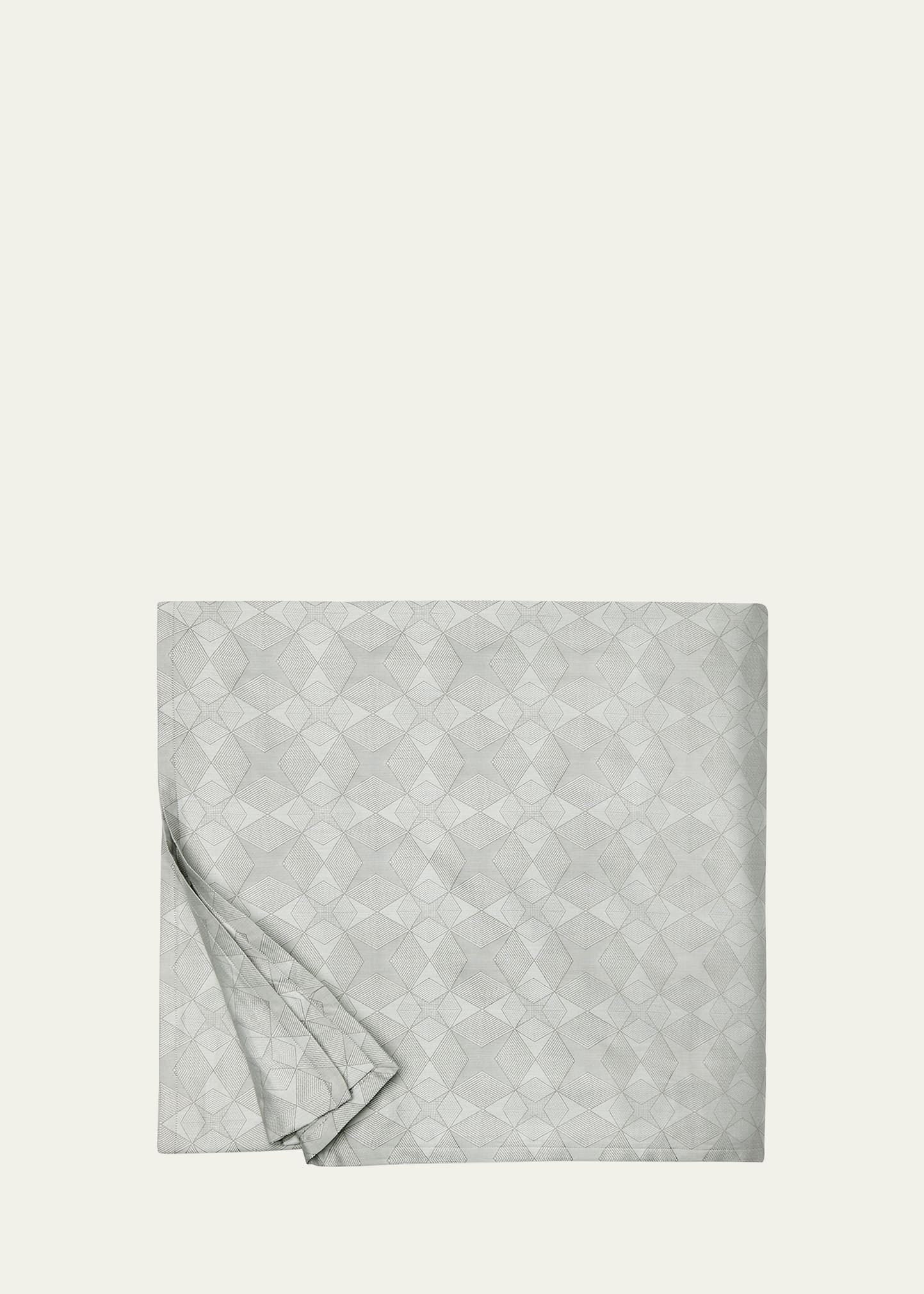 A yarn-dyed sateen jacquard of a full-coverage geometric pattern in titanium and white threads Made of long-staple cotton Approx. 88"L x 92.0"W Item Weight (Lbs.): 5.0 Machine wash tumble dry, machine wash warm Made in Italy