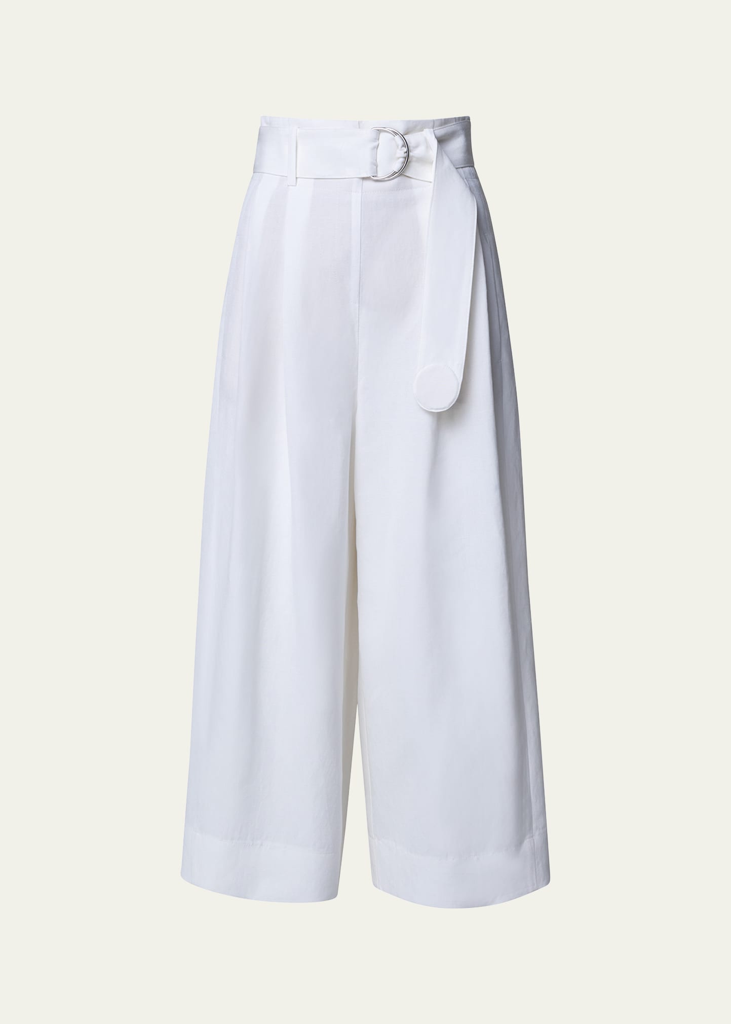 Akris punto "Fiorella" culotte pants featuring a D-ring self-belt High rise Pleated front Side slip pockets Wide legs Cropped length Invisible side zip; belt loops Viscose/linen Lining: Cupro Imported