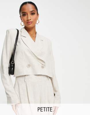 Flounce London Petite satin cropped blazer in beige - part of a set-Neutral