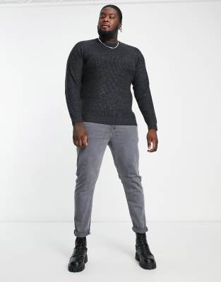 French Connection Plus medium stitch raglan sweater in charcoal-Navy