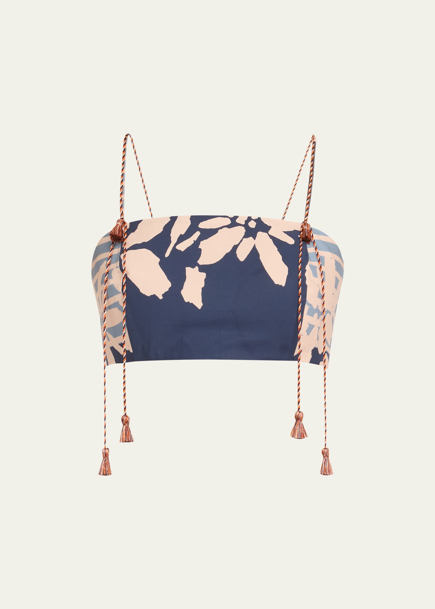 Silvia Tcherassi "Fresco" poplin bralette top Square neckline Rope shoulder straps with tassel accents Fitted Cropped length Back zip Cotton Dry clean Made in Colombia