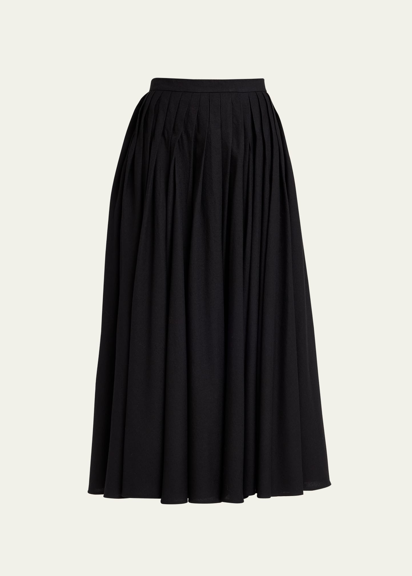 Quira skirt with allover pleated detail High waist Fit and flare silhouette Full length Back zip Virgin wool Made in Italy
