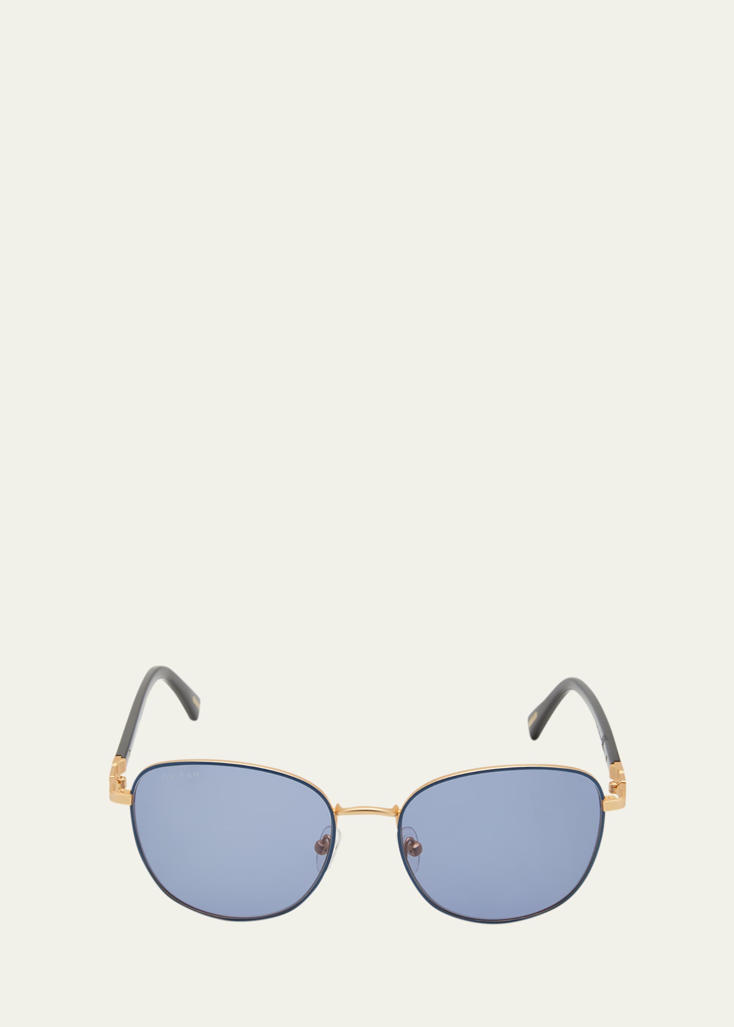 BY FAR "Gibson Matt" round sunglasses in metal Lens/bridge/temple (in mm): 54-17-140 Solid lenses; logo on corner Adjustable nose pads Logo engraved accent on temples Thin, tapered arms 100% UVA/UVB protection Imported
