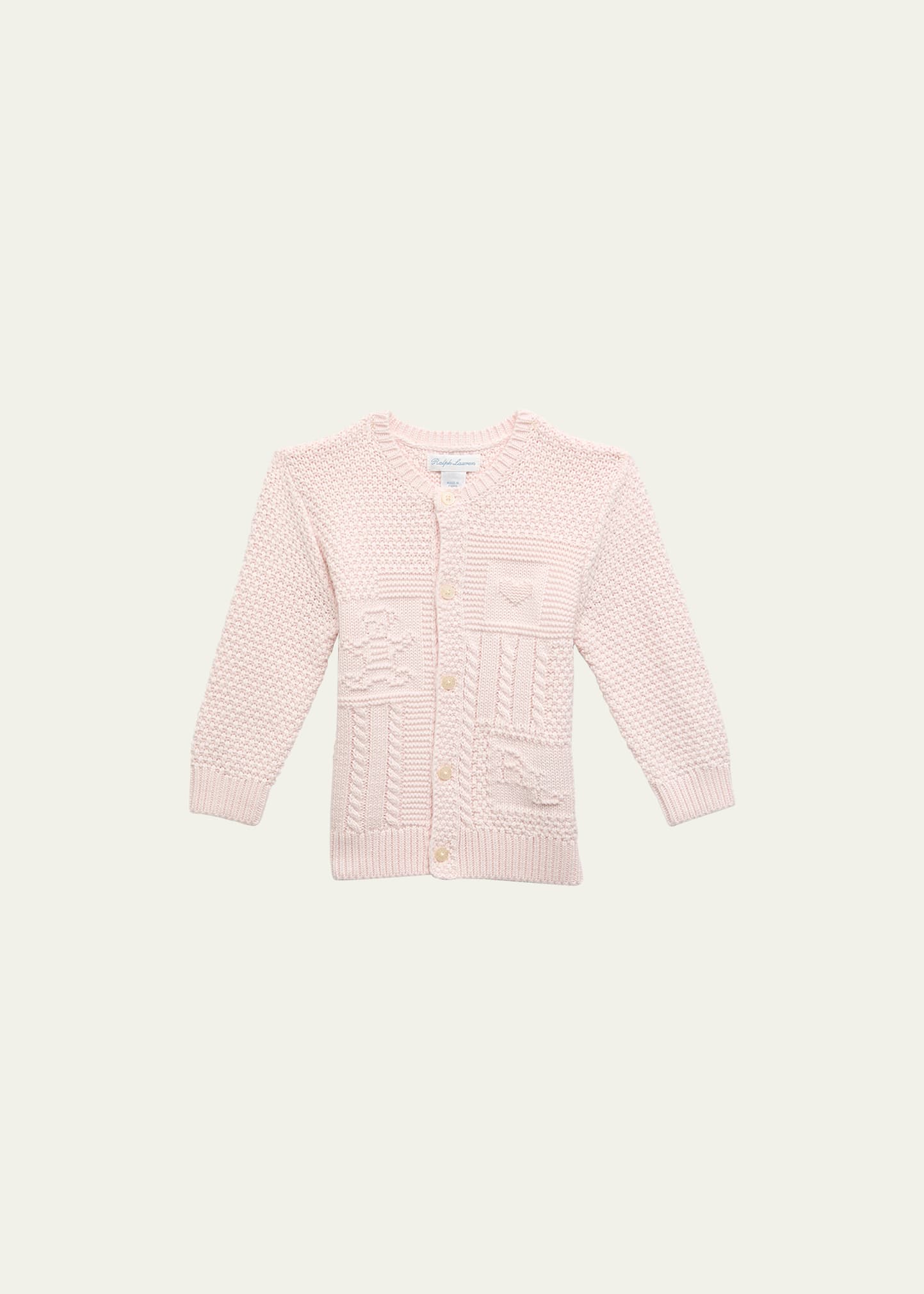 Ralph Lauren Childrenswear knitted cardigan with bear intarsia Crew neckline Long sleeves Full button front Ribbed trim Button closure Organic cotton Imported