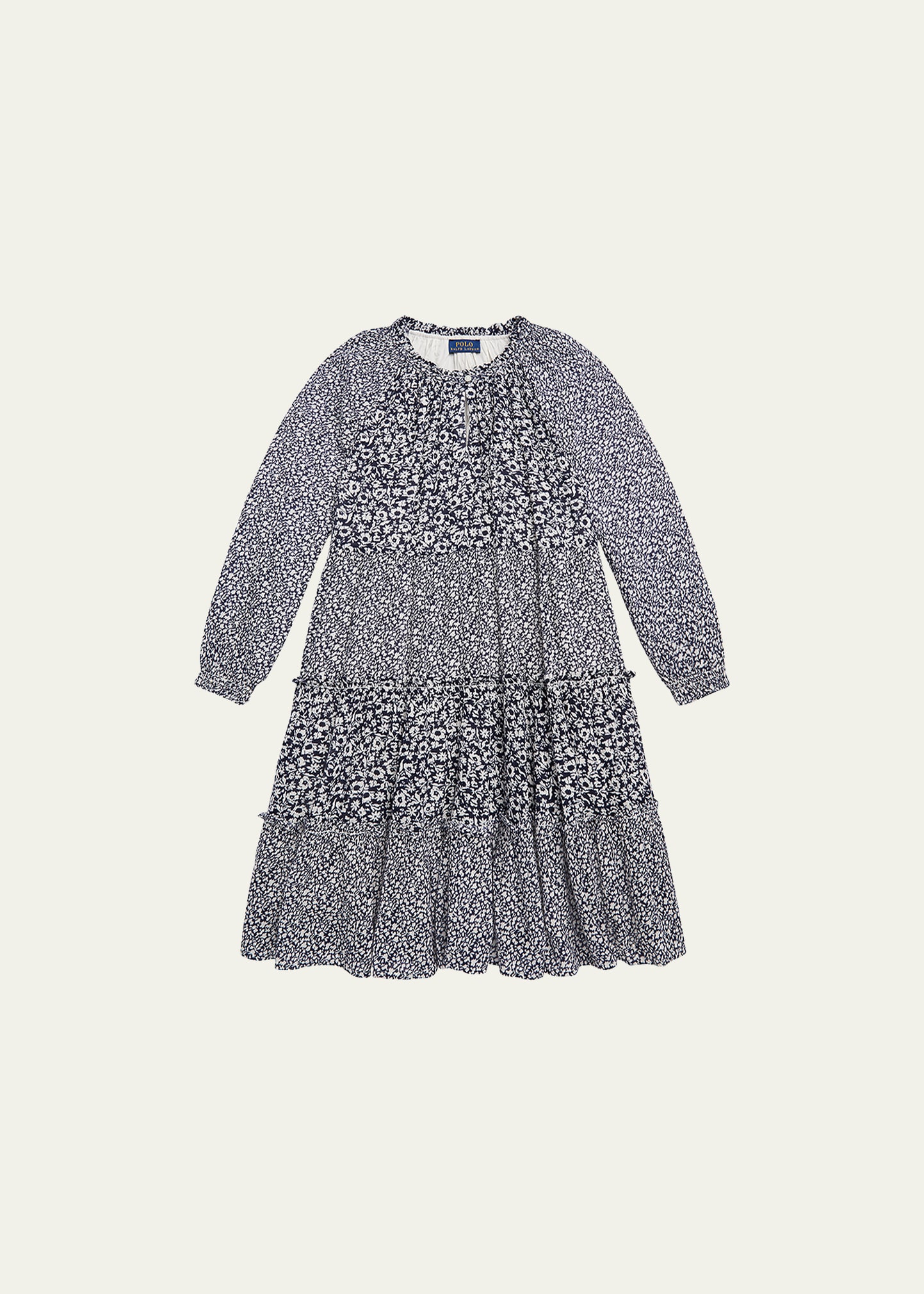Ralph Lauren Childrenswear mixed floral print tiered gauze dress with ruffle trim\ Round neckline Long sleeves Keyhole closure at front Pullover style Machine washable A-line silhouette Cotton/viscose Imported