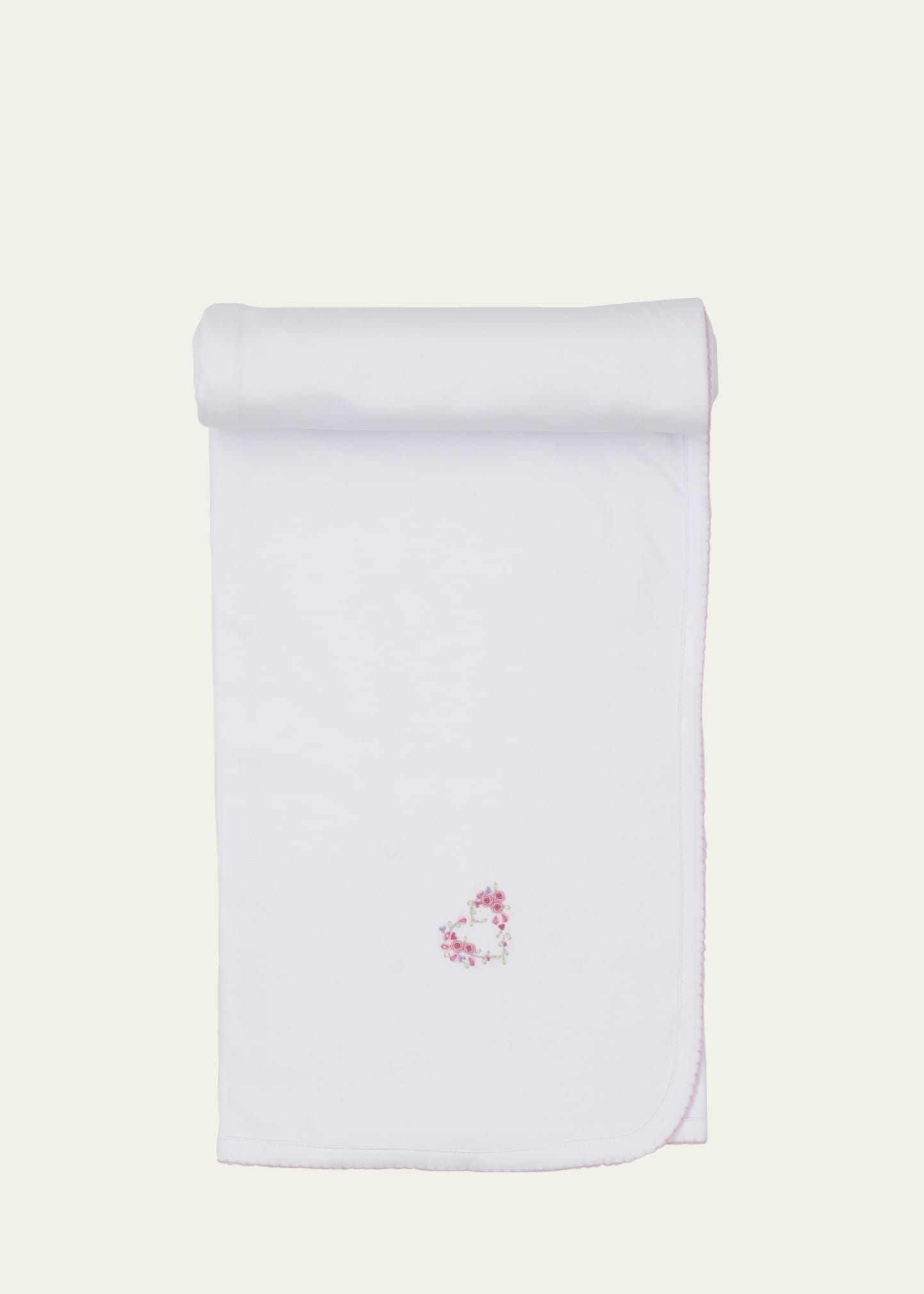 Kissy Kissy blanket featuring a hand-embroidered, heart-shaped floral trellis and contrast trim 2-ply for extra warmth & comfort Approx. 28.5"L x 26"W Pima cotton Machine wash cold; tumble dry Made in Peru