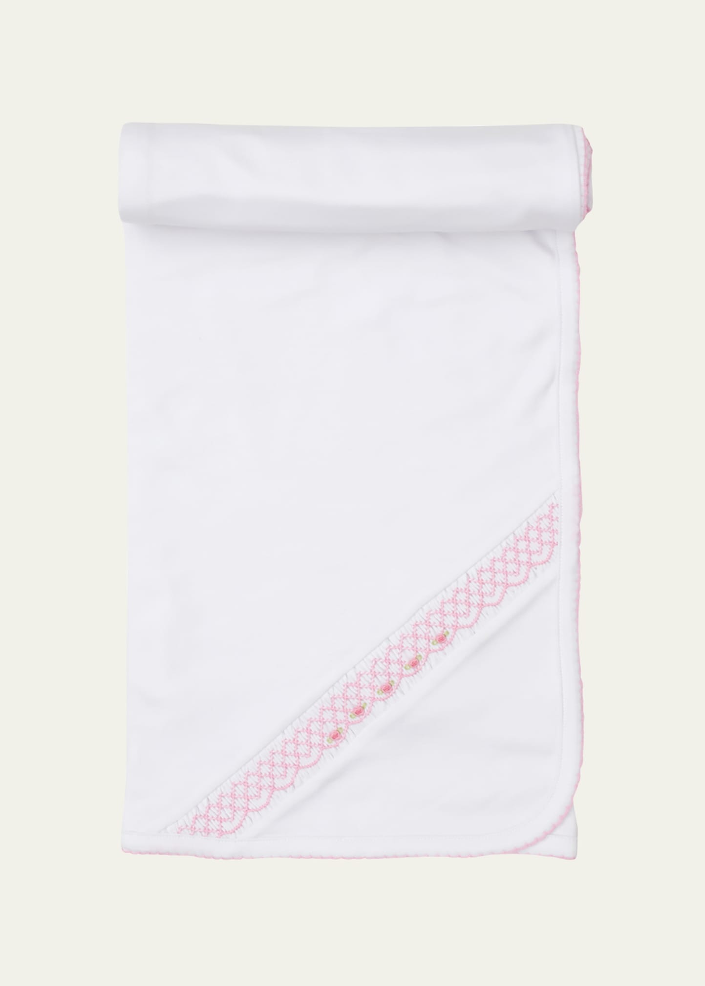 Kissy Kissy smocked blanket from the Summer Bishop collection 2 ply for extra warmth & comfort Approx. 28.5" x 26" in. Machine wash cold, machine wash tumble dry Made in Peru