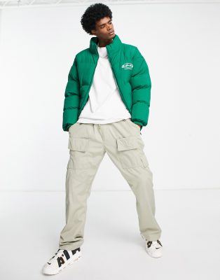 Good For Nothing oval oversized puffer jacket in green with logo print