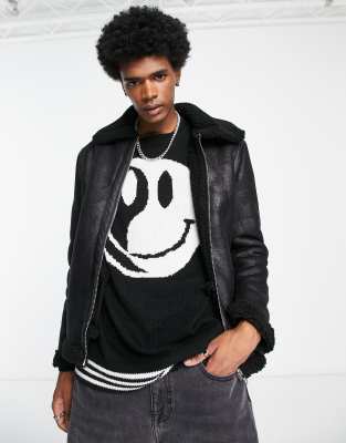 Good For Nothing shearling aviator jacket in black faux leather