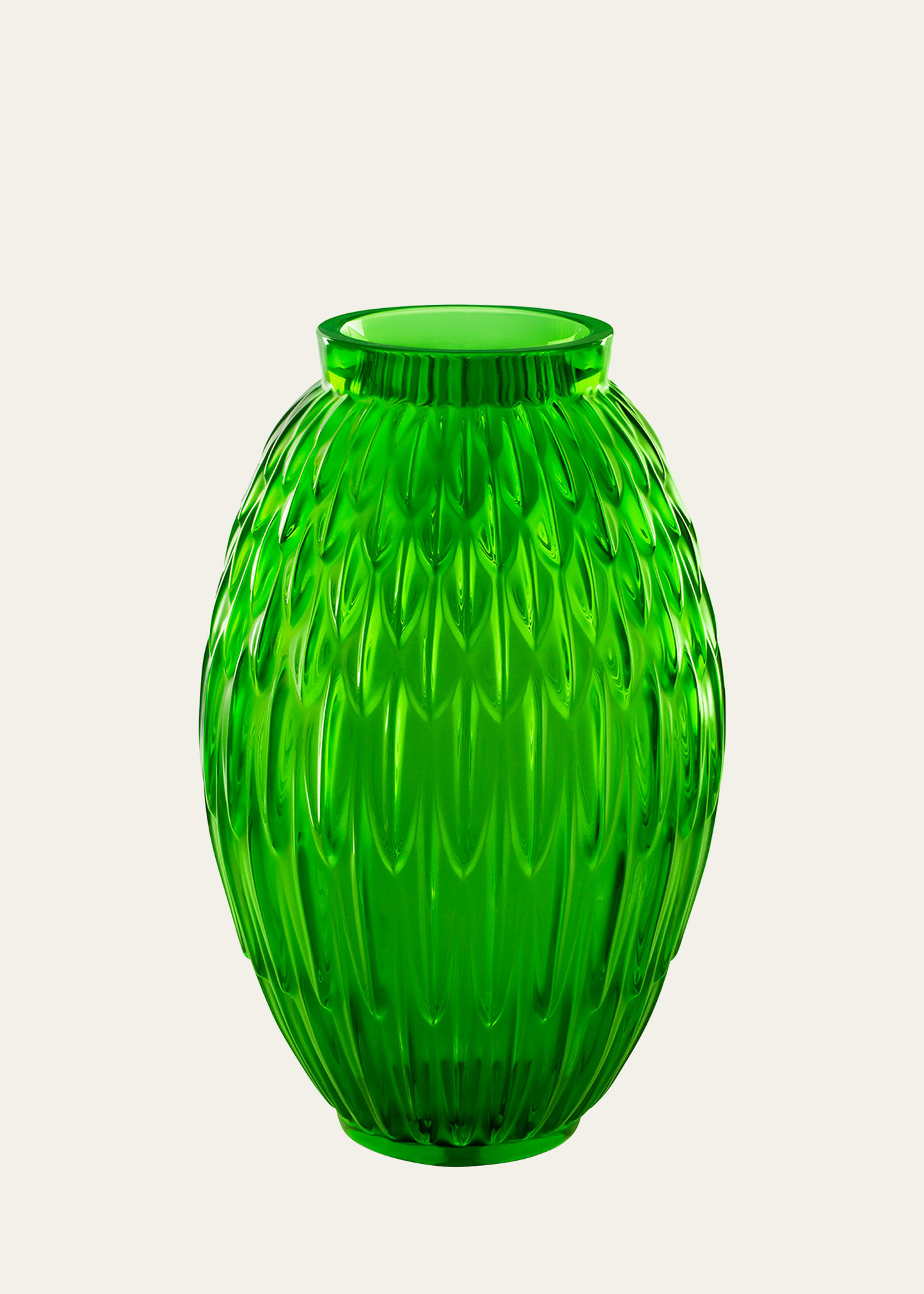 Make way for the animal kingdom. A theme dear to René Lalique, the Empreinte Animale collection pays tribute to wildlife in all its splendor. In the amazon forest, quietly lurking in the flamboyant green foliage, lives the parrot with its characteristic plumage. Like the light coming through the tropical canopy, the "Plumes" vase comes to life with the radiance of the crystal. Approx. 6.7"Dia x 10.4"T Sold individually Item Weight (Lbs.): 5.1 Wipe clean Made in France