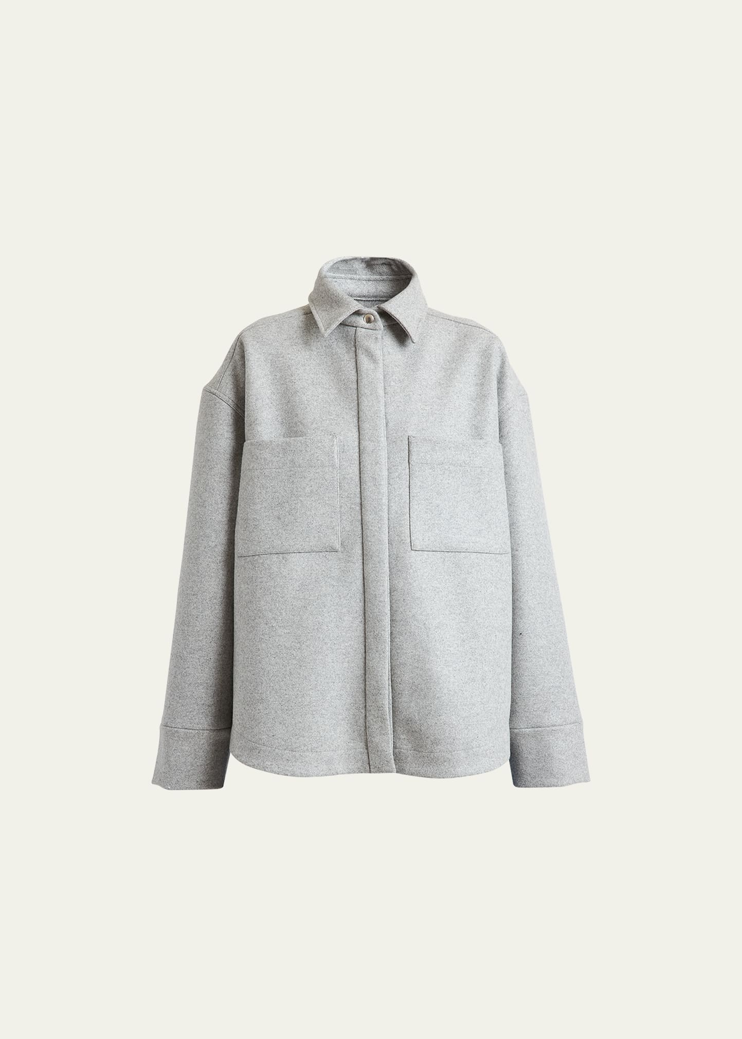 ARMARIUM "Harry" shirt jacket in wool and cashmere Single-breasted front Spread collar Concealed button front Long sleeves; button cuffs Front patch pockets Back yoke Curved hem Mid-length Relaxed fit Wool/cashmere Made in Italy