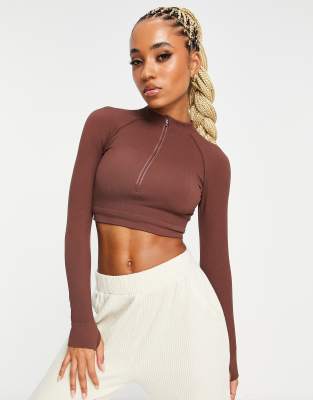 Tops by HIIT Rep and repeat Quarter zip fastening Raglan sleeves for unrestricted movement Cropped length Regular fit