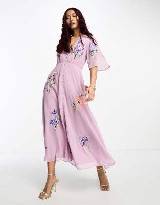 Dresses by Hope & Ivy POV: you have plans Floral embroidery V-neck Faux-button front Short sleeves Back zip closure Regular fit