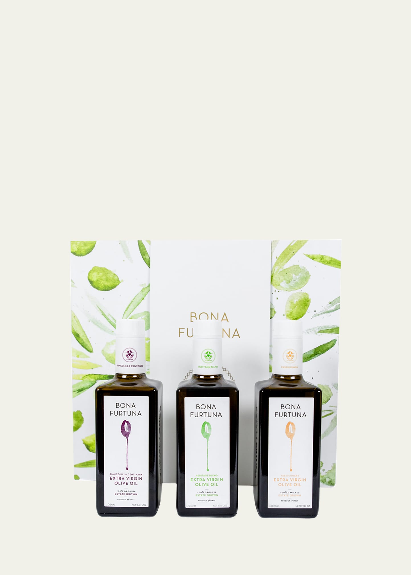 Extra virgin olive oil trio gift set Made from sustainable Sicilian ingredients Organic and vegan Approx. 16"Dia. x 6"T Item Weight (Lbs.): 10.0 Made in Italy