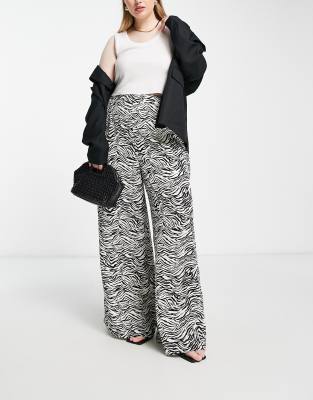 In The Style Plus x Yasmin Devonport exclusive wide leg pants in zebra print-Multi