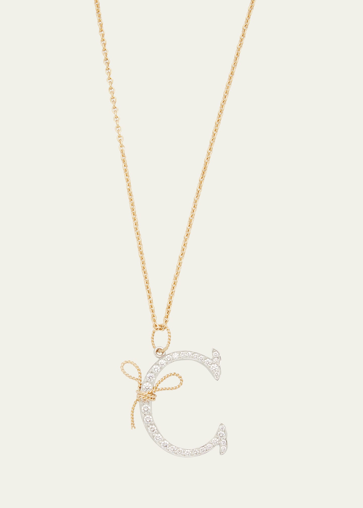Verdura initial "C" pendant adorned with 32 round diamonds Approx. 28" length chain included 18-karat yellow gold/platinum Total diamond carat weight: 0.82 Lobster clasp closure Made in USA