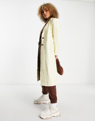 Jayley shiny faux leather croc detail boyfriend trenchcoat in butter yellow