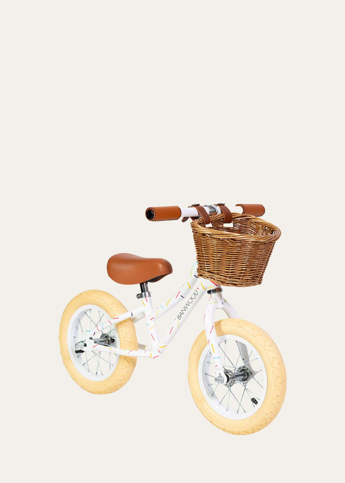 Banwood balance bike with retro design and vegan leather accessories Features steel frame with adjustable handlebar and wicker basket Functional bell with 12"Dia. Wheels Minimal seat height: 14.5", maximum seat heat: 17.3" Handlebar height: adjustable from 19.5" to 23" Recommended for ages: 3-5 years Metal alloy/steel Item weight (lbs): 10 Wipe clean Imported