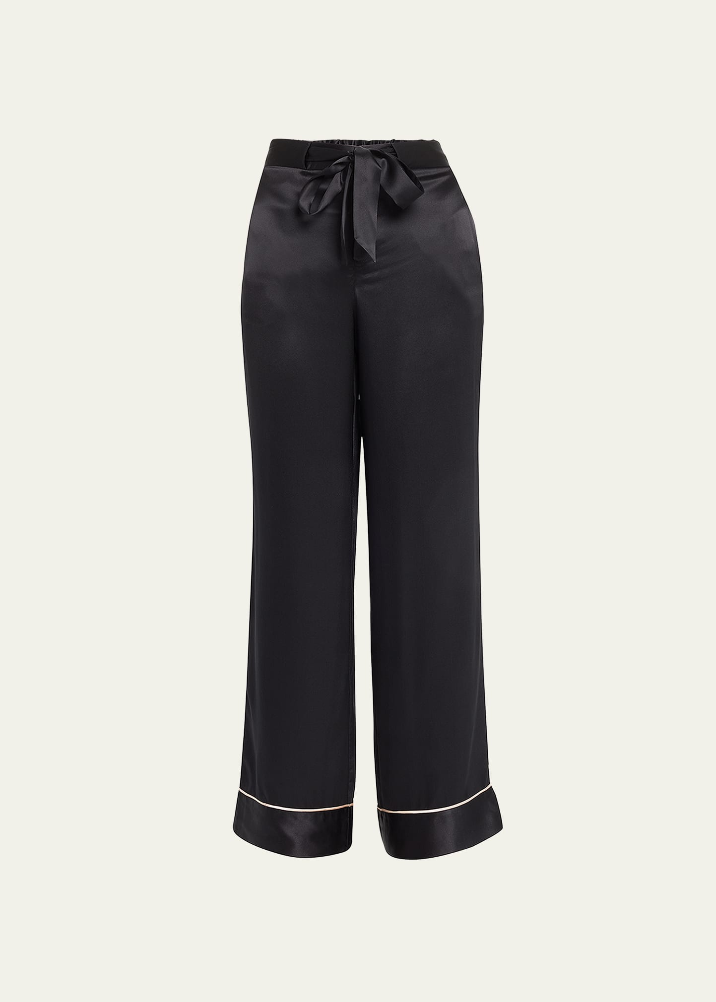 Kiki De Montparnasse "Kiki" silk lounge pants with contrast piping at the hem Elasticized drawstring waistband Flat front Full length Straight legs Pull-on style Silk Dry clean Imported