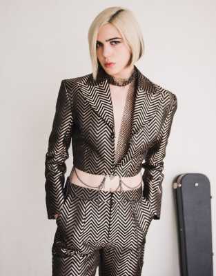 Labelrail x Julia Cumming chain detail jacquard cropped blazer in bronze - part of a set-Multi