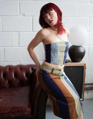 Labelrail x Lara Adkins patchwork corduroy bandeau top in multi - part of a set