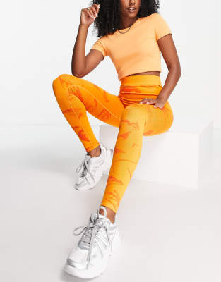 Leggings by LAPP The Brand Add-to-bag material Seamless design helps reduce friction All-over logo and image print High rise Elastic waist Body-conscious fit