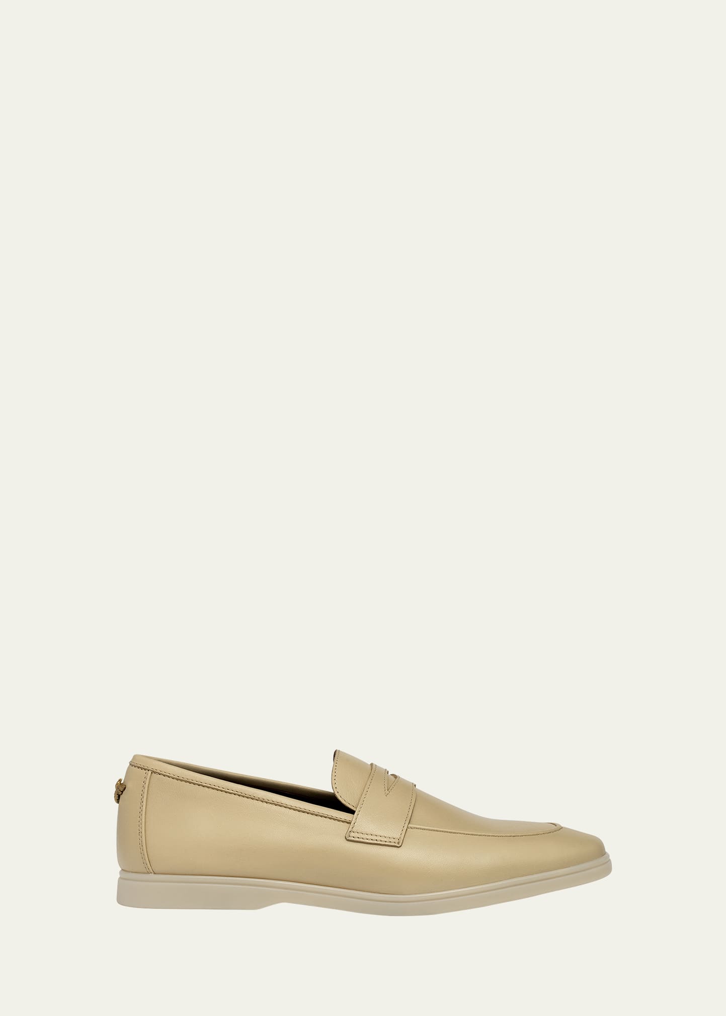 Bougeotte leather sporty penny loafers. 0.5" flat heel. Almond apron toe. Keeper strap at notched vamp. Slip-on style. Leather lining. Rubber outsole. Made in Italy.