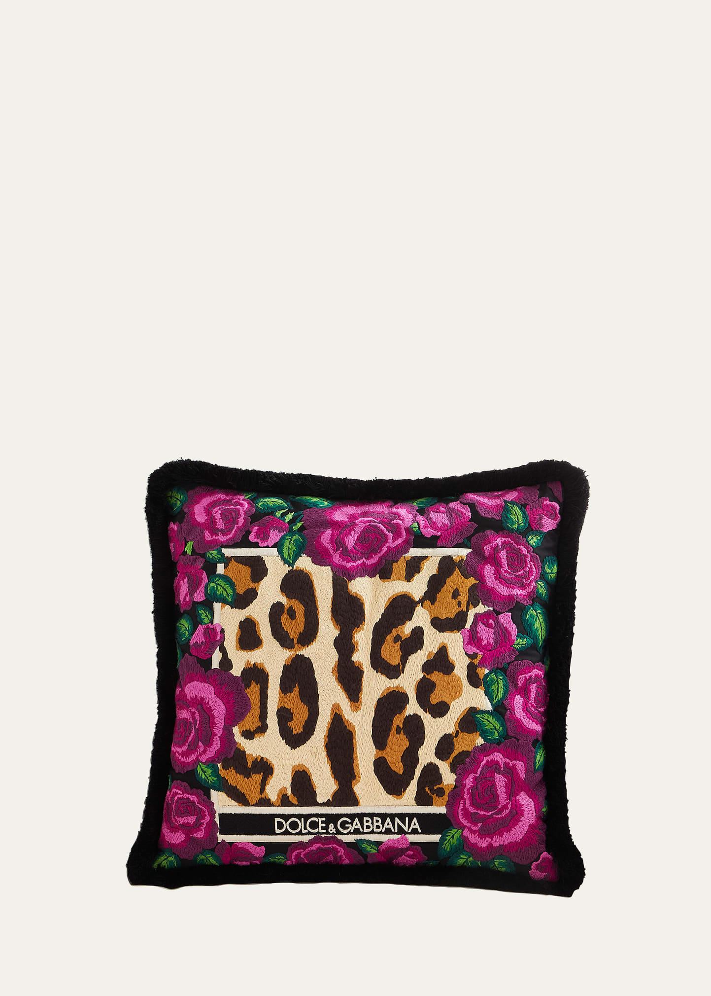 The cushion is generously padded and framed with Torchon trim. The front features intricate, vivid embroidery accompanied by a logo band, while the back is composed of solid-colored plush cotton velvet Personalized with the leopard motif, ever-present in the DNA of Dolce & Gabbana, this exquisite embroidered cushion with a classic, biting soul expresses a strong personality and timeless charm. Hidden zipper closure Removable insert Body, velvet (cotton) Insert, polyfill Approx. 16"W x.