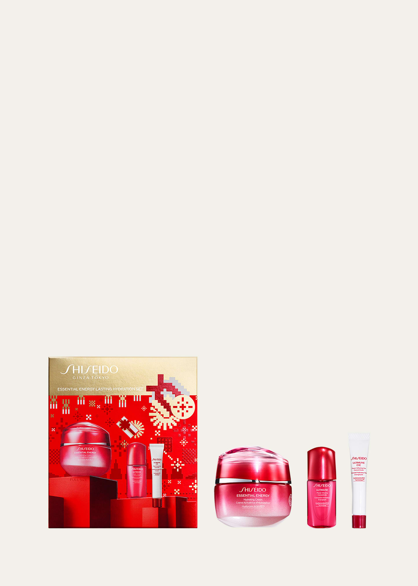 Essential Energy Hydrating Cream, 50m L (Full Size) Ultimune Power Infusing Concentrate, 10m L Ultimune Eye Power Infusing Eye Concentrate, 5m L What It Does: Meet the ultimate trio for hydration and radiance. This gift set includes a full-sized Essential Energy Hydrating Cream, a must-have moisturizer that provides 24-hour hydration. Pair with deluxe-sized samples of skin-strengthening Ultimune Power Infusing Concentrate and Ultimune Eye Power Infusing Eye Concentrate for replenished, radiant s.