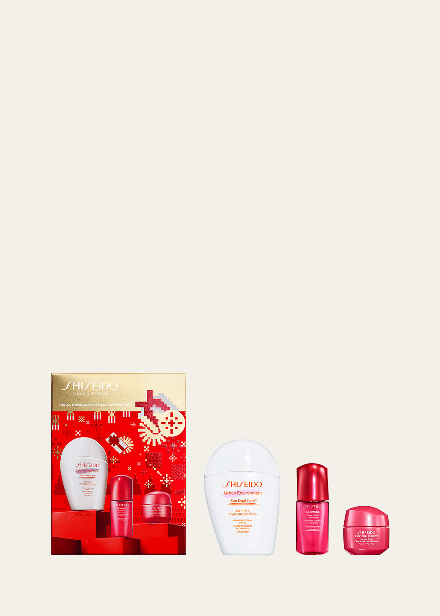 Urban Environment Oil-Free Sunscreen SPF 42, 50 mL (Full Size) Ultimune Power Infusing Concentrate, 10 mL Essential Energy Hydrating Cream, 15 mL What It Does: Discover best-selling essentials for daily sun protection and deep hydration. Defend skin from UV damage with Urban Environment Oil-Free Sunscreen SPF 42, strengthen with Ultimune Power Infusing Concentrate, and intensely moisturize with Essential Energy Hydrating Cream. How To Use: Ultimune Power Infusing Concentrate: Use mornin...
