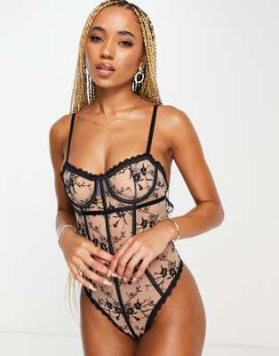 Lingerie & Sleepwear by Lost Ink Exclusive to ASOS Floral embroidery Sweetheart neck Adjustable straps Thong cut Body-conscious fit