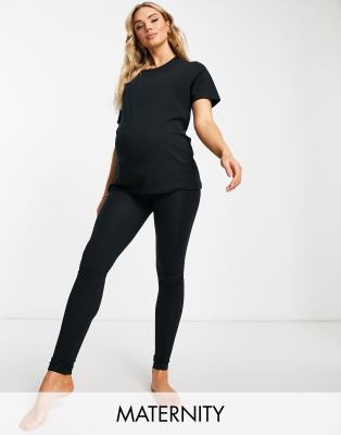 Maternity by Mama. licious Includes a T-shirt and a pair of leggings Regular-fit T-shirt Crew neck Short sleeves Body-conscious-fit leggings Elasticized waistband Designed to fit you from bump to baby