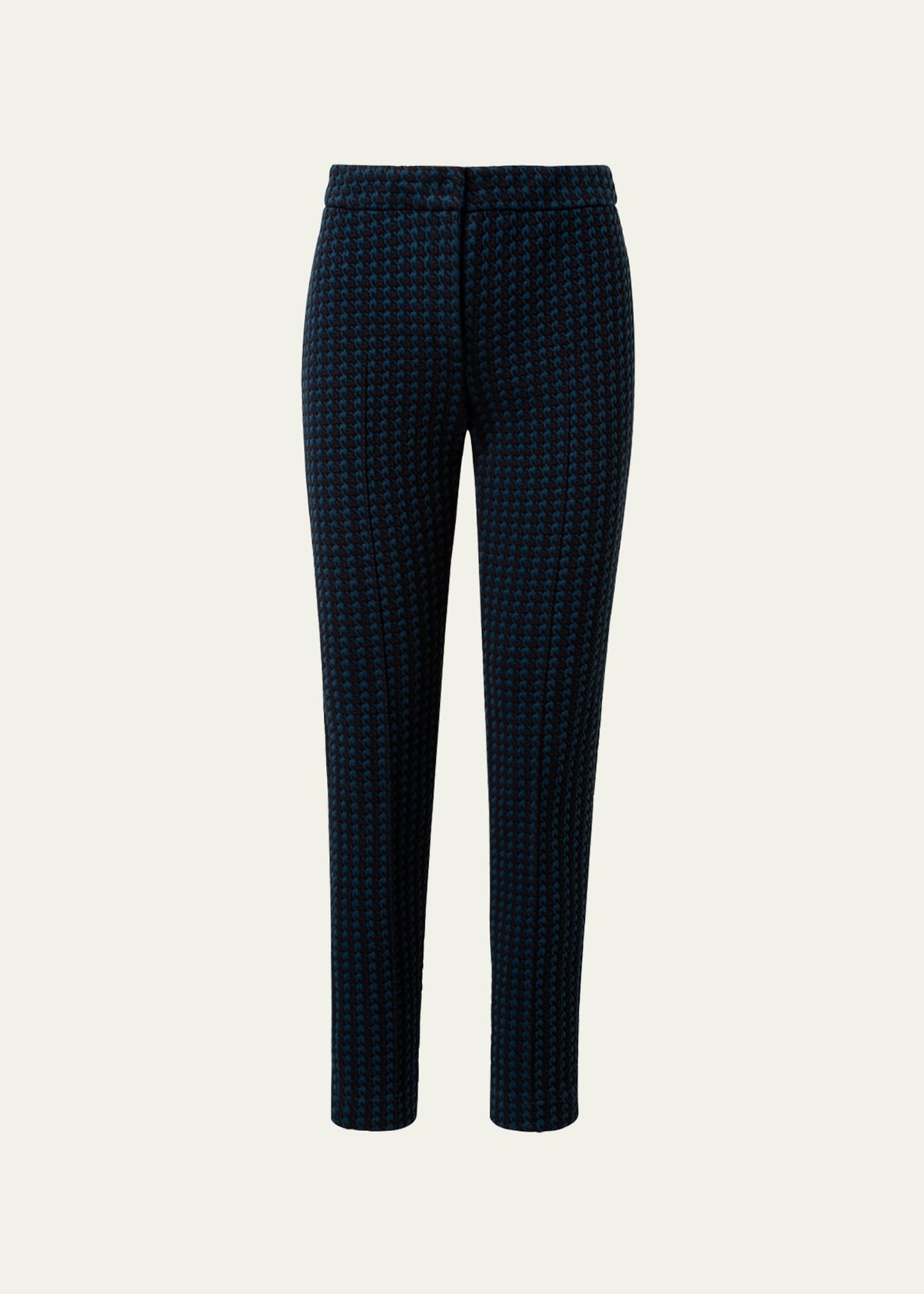 Akris punto "Mara" pants in an allover 3D houndstooth print Front crease Mid-rise; sits high on hip Button/zip fly Straight legs; slim Full length Fitted Cotton/nylon/polyamide Made in Romania