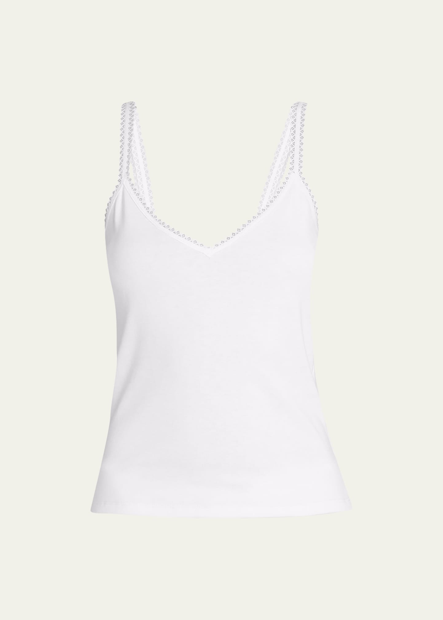 Andine "Mariela" tank with scalloped lace trim V neckline Sleeveless Hem sits at the hips Relaxed fit Pullover style Supima® cotton Machine wash cold Made in the USA