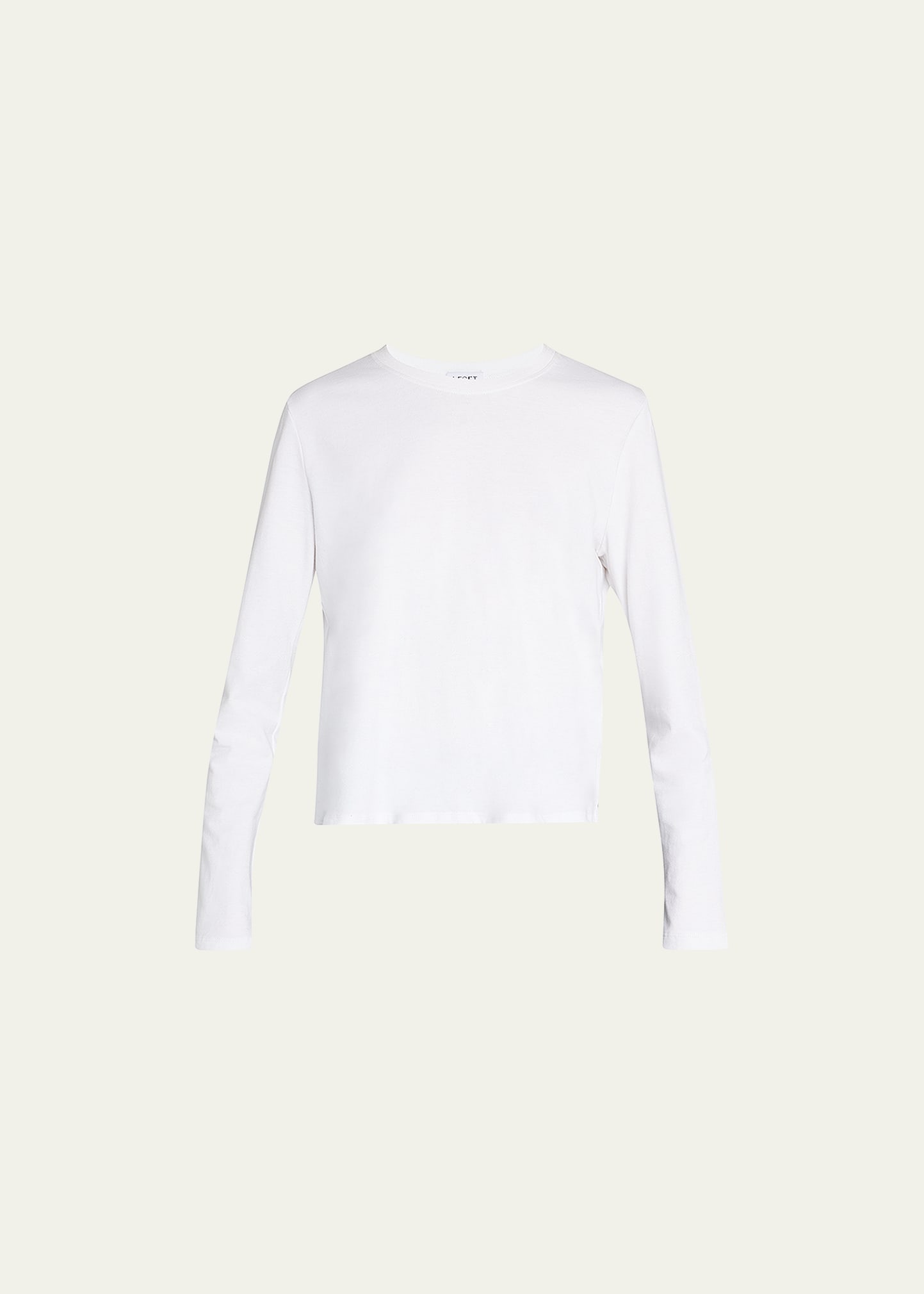 LESET "Maya" essentials tee ideal for layering and year-round wear Approx. 21.5"L from shoulder to hem Crew neckline Long sleeves; approx. 23.5"L Relaxed fit Pullover style Cotton Made in USA